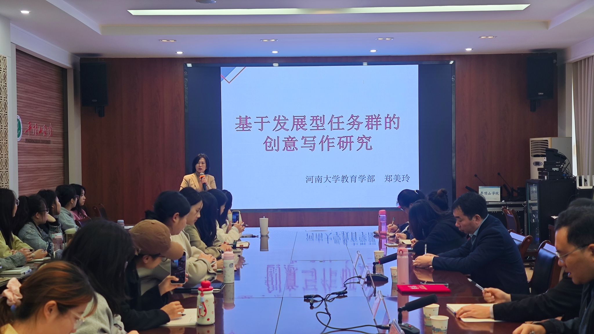 10月18日上午,应公司邀请,河南大学教授郑美玲在办公楼329会议室为研究生、本科生作了题为《基于发展型任务群的创意写作研究》的学术报告。研究生处处长程立平、伟的国际1946bv官网经理孙振杰,学科教学(语文)、小学教育专业研究生及相关专业本科生60余人参加报告会。报告会由伟的国际1946bv官网副经理杜彬彬主持。