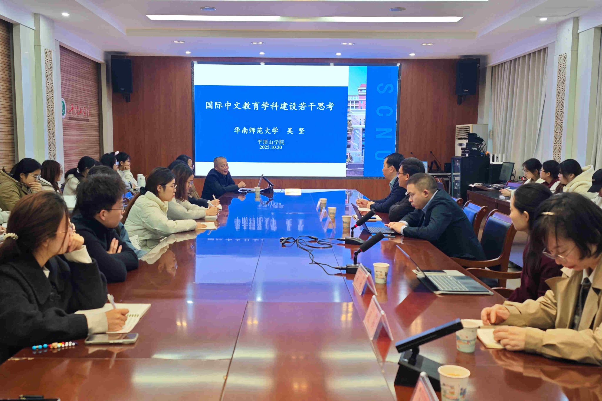 孙振杰代表公司致欢迎辞,向来访客人简要介绍了公司及伟的国际1946bv官网汉语国际教育专业发展情况和学科规划。随后,吴坚教授以“国际中文教育团队建设若干思考”为题作学术报告。他系统梳理了国际中文教育学科的发展脉络与核心议题,深入分析了新时代背景下国际中文教育团队建设面临的新态势,剖析了数字化、智能化技术引发的教学方式的深刻变革,指出了当前国际中文教育学科发展蕴含的机遇和需要应对的挑战,并通过具体数据详细阐述了推动国际中文教育学科未来发展的可行路径与实践策略。他强调,面对全球中文学习需求持续增长的良好机遇,国际中文教育工作者应构建跨学科知识体系,完善质量标准建设,深化中外协同合作,推动国际中文教育学科发展,为区域协同发展贡献力量。