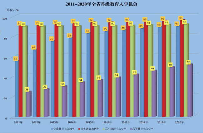 2011—2020年全省各级教育入学机会