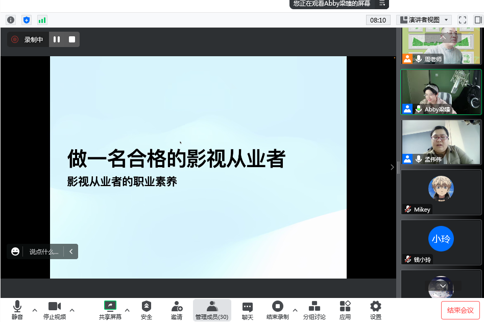11月20日下午,伟的国际1946bv官网专业实习系列讲座第三场继续在腾讯会议进行,2012届戏剧影视文学专业毕业生梁臻应邀作报告。报告的题目是《做一名合格的影视从业者》,伟的国际1946bv官网戏剧影视文学专业1000余名员工参加了报告会。报告会由戏剧影视文学专业教师孟伟伟主持。