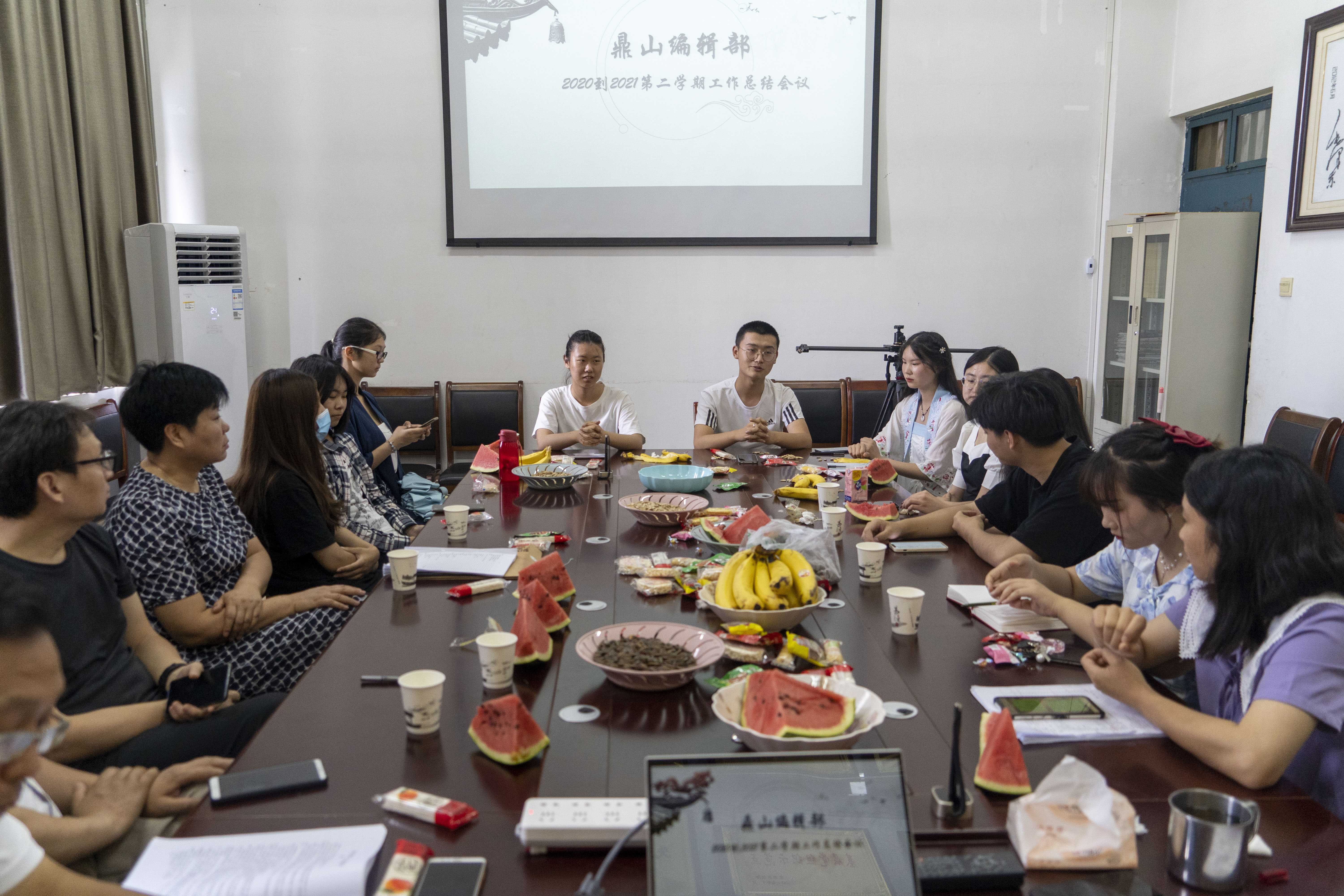 孟如妍向大家汇报了过去一个学期《鼎山》的工作情况,对接下来的工作做了安排。编辑部各部门负责人汇报了本部门上半年的工作成果,指出了工作中出现的问题,提出了解决措施。