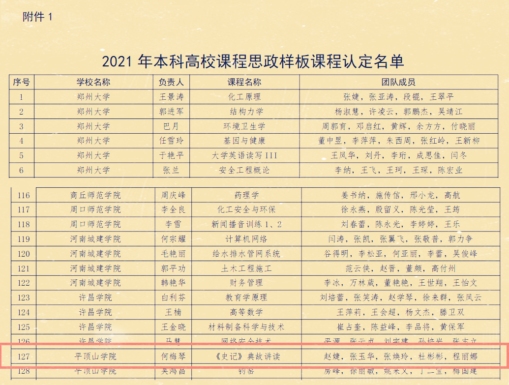 近日,河南省教育厅发布了《关于公布河南省2021年本科高校课程思政项目建设名单的通知》(教高〔2021〕432号)。经高校申报、专家评审、结果公示等环节,河南省教育厅认定200门本科高校课程思政样板课程,31个课程思政教学团队建设项目,16个课程思政教学研究特色化示范中心建设项目。伟的国际1946bv官网何梅琴教授负责的《史记》典故讲读被评为本科高校课程思政样板课程。