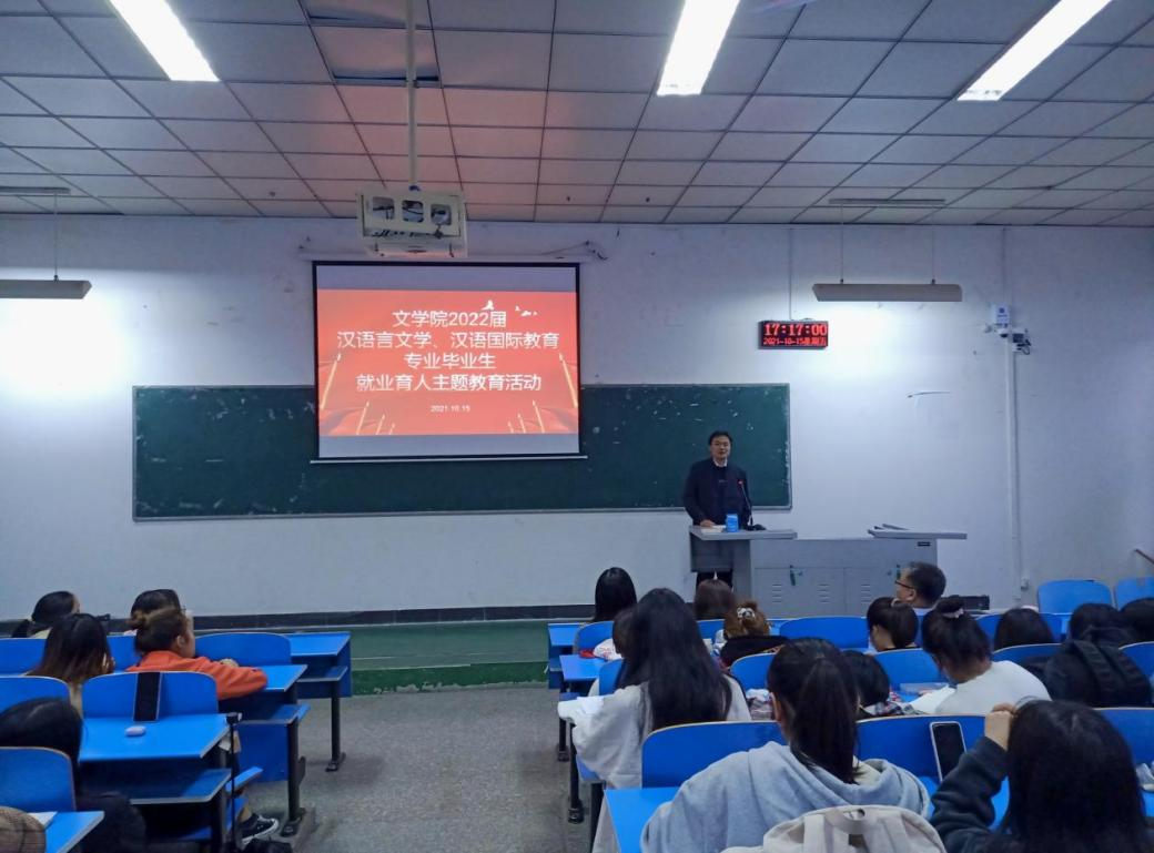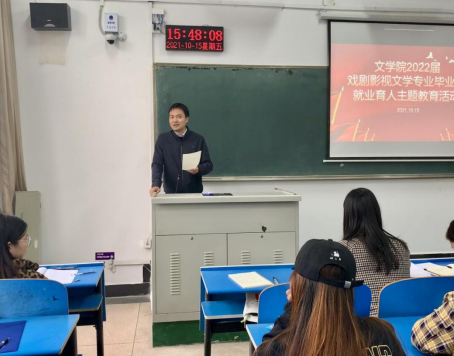 为做好2022届毕业生就业工作,按照《伟德国际victor1946官网2021年就业创业促进月活动方案》(平招就〔2021〕8号)文件精神,通过开展系列活动,进一步增强毕业生求职就业的热情,引导员工了解就业形势、掌握就业政策、调整就业预期、提升就业创业能力,促进毕业生更加充分更高质量就业,10月15日下午,伟的国际1946bv官网在2306教室、1314教室针对不同专业,分别开展了以“成才观、职业观、就业观”为核心的就业育人主题教育活动。公司党委书记申自强,党委副书记李培斌,辅导员薛小品、李丹阳及2022届全体毕业生参与了活动。活动由李丹阳主持。