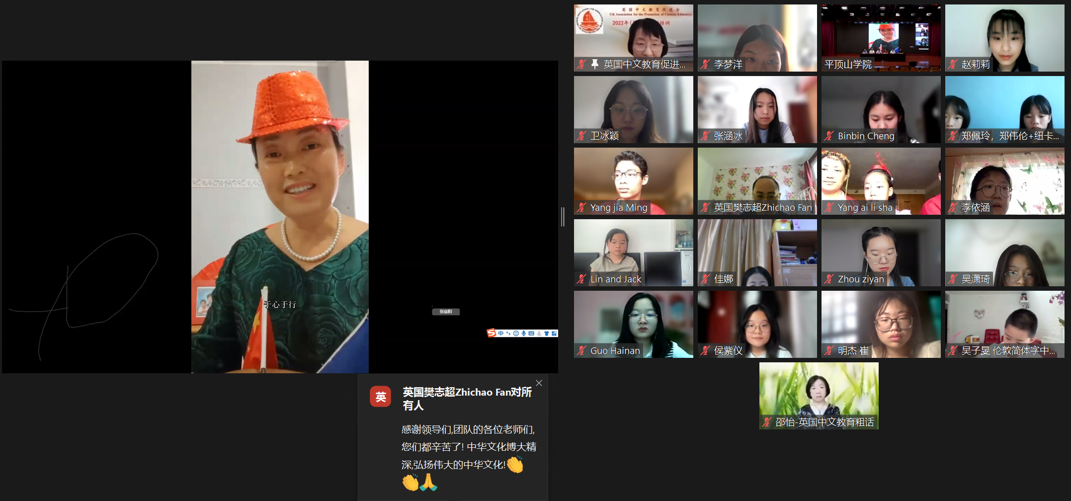 8月7日下午,2022年中华文化大乐园——欧洲园(第十四期)闭园仪式在公司中心会议室举行。英国中文教育促进会会长伍善雄先生、法国奥罗阿大区华文教育联盟主席罗坚女士、德国科隆莱茵中原公司董事长冯爱民女士、捷克布拉格中华国际公司董事长戴波先生、全英河南同乡联谊会暨英国河南商会会长王秋蕙女士、法国河南同乡会会长祝晓琳女士等海外嘉宾和授课教师、志愿者以及来自英国、法国、德国和捷克等400余名华裔学员、部分家长以线上方式参加了闭园仪式。河南省人民政府侨务办公室处长王润玲、副处长赵玉庆,公司副董事长于长立和国际交流与合作中心、伟的国际1946bv官网等部门负责人在中心会议室主会场参加会议,仪式由平顶山市人民政府侨务办公室主任陈延辉主持。