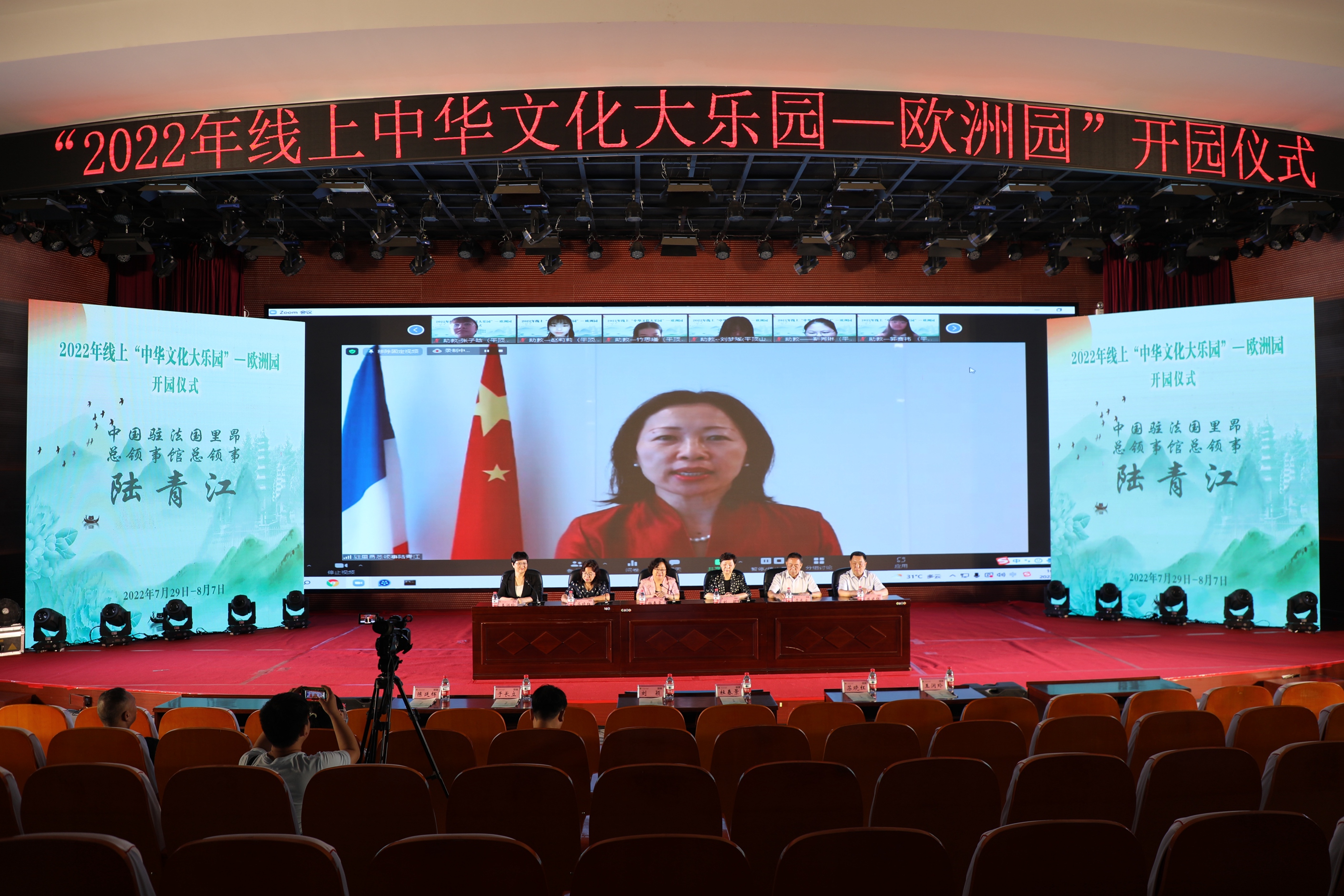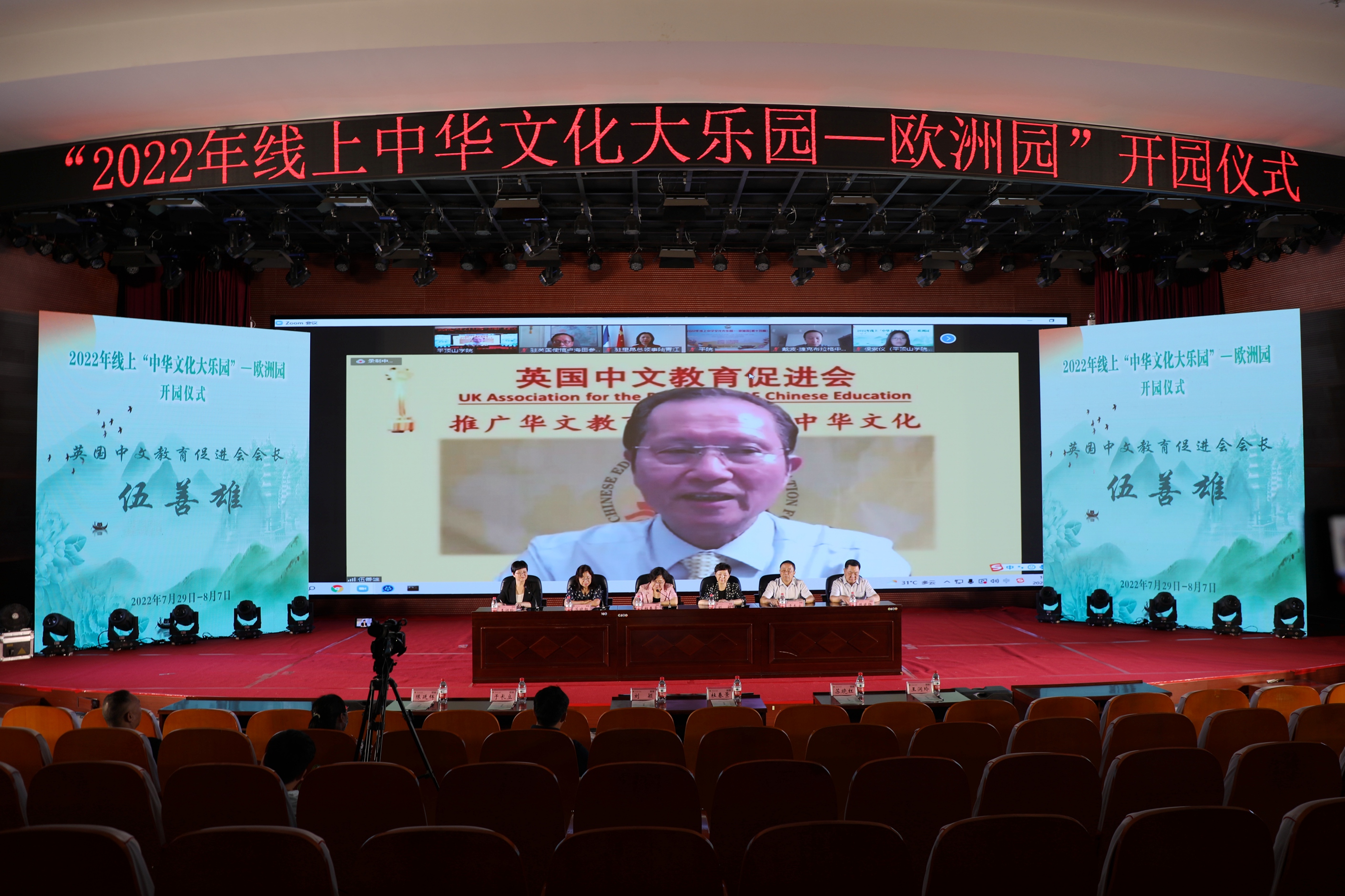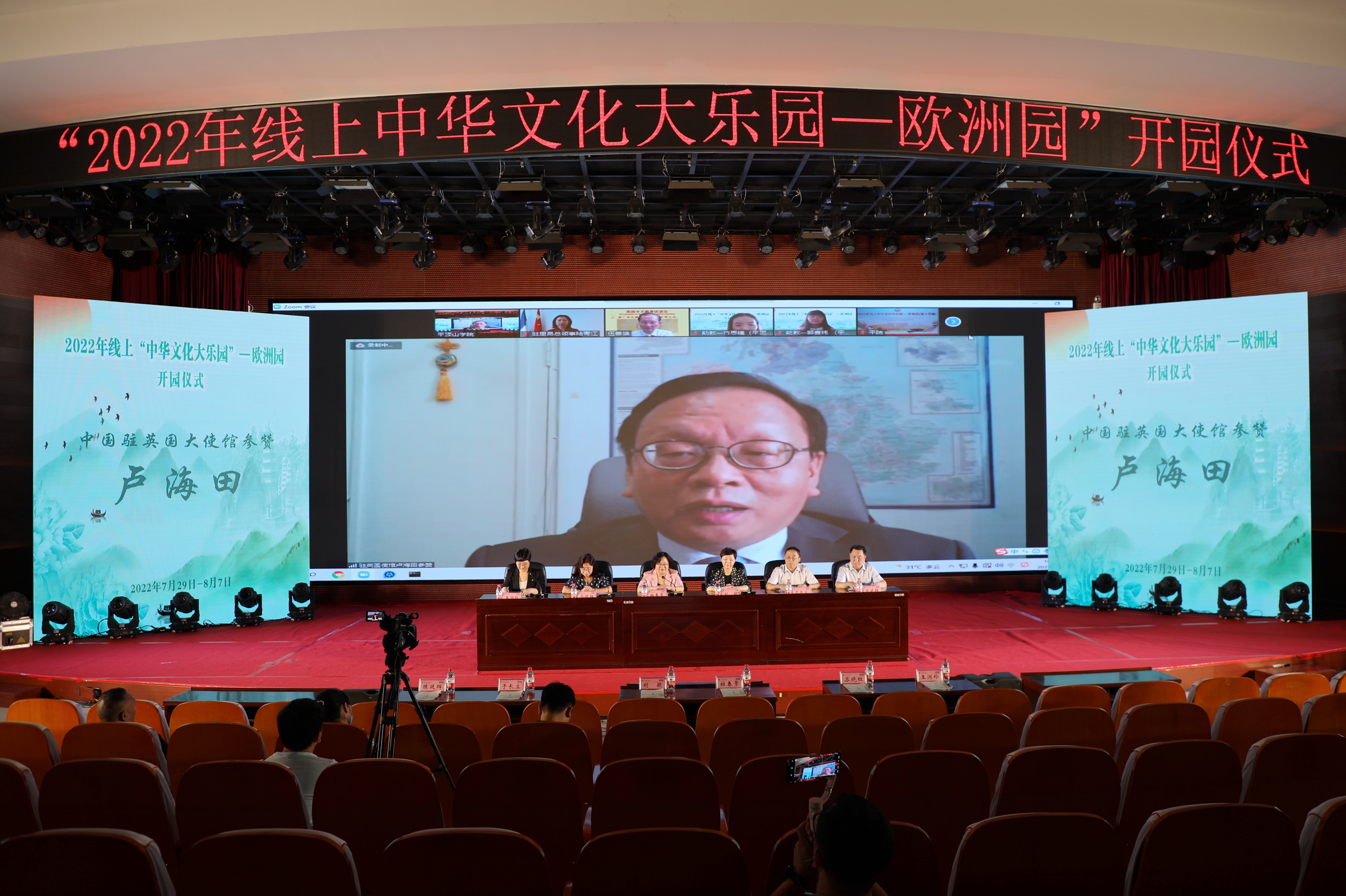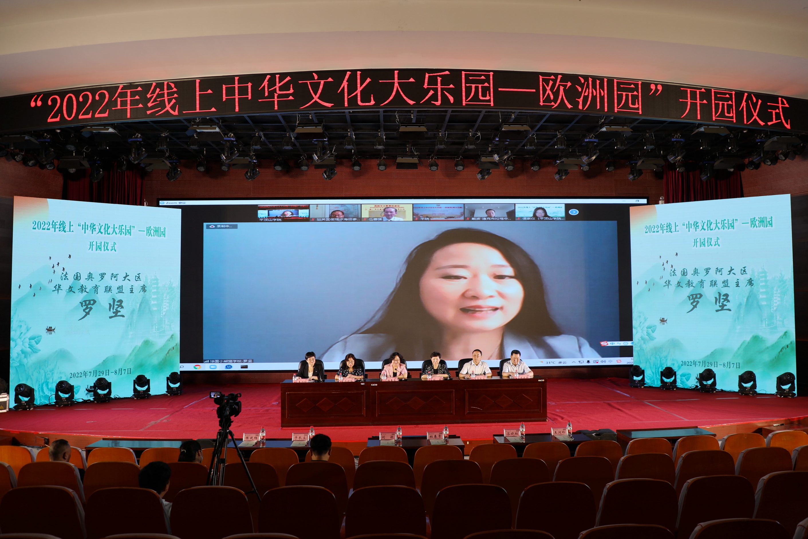 7月29日下午,由国家侨务办公室主办、河南省人民政府办公室承办、伟德国际victor1946官网执行的2022年线上中华文化大乐园——欧洲园(第十四期)开园仪式在公司中心会议室举行。中国驻法国里昂总领事馆总领事陆青江、中国驻英国大使馆参赞卢海田、英国中文教育促进会会长伍善雄、法国奥罗阿大区华文教育联盟主席罗坚、德国科隆莱茵中原公司董事长冯爱民、捷克布拉格中华国际公司董事长戴波、全英河南同乡联谊会暨英国河南商会会长王秋蕙、法国河南同乡会会长祝晓琳、河南海外联谊会副会长杜春景、平顶山市海外联谊会会长刘颖、平顶山市人民政府侨务办公室主任陈延辉、公司董事长苏晓红、副董事长于长立,以及此次活动的授课师生和来自欧洲多国的400余名华裔青少年中文学习者以线上线下相结合的方式参加了开园仪式。开园仪式由河南省人民政府侨务办公室处长王润玲主持。