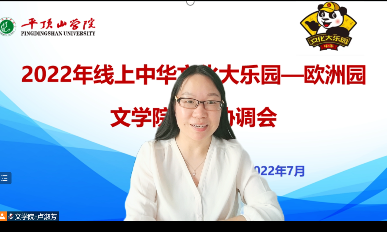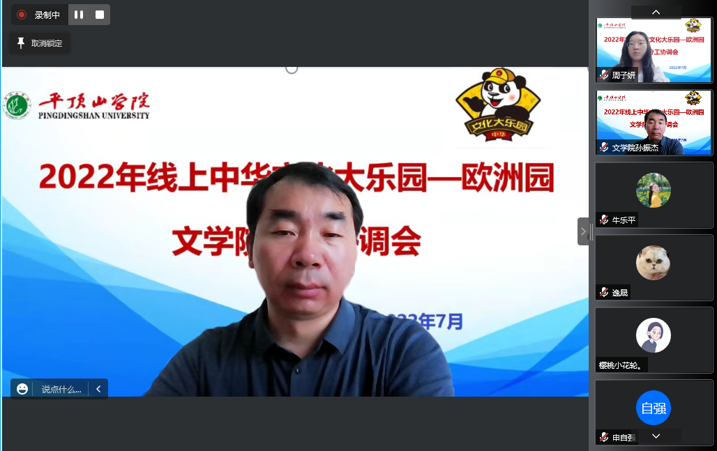 7月26日上午,伟的国际1946bv官网召开2022年线上中华文化大乐园——欧洲园活动工作协调会。公司党委书记申自强、经理孙振杰、党委副书记李培斌及活动组织骨干教师和员工志愿者40余人参加了会议。会议由伟的国际1946bv官网副经理王惠主持。