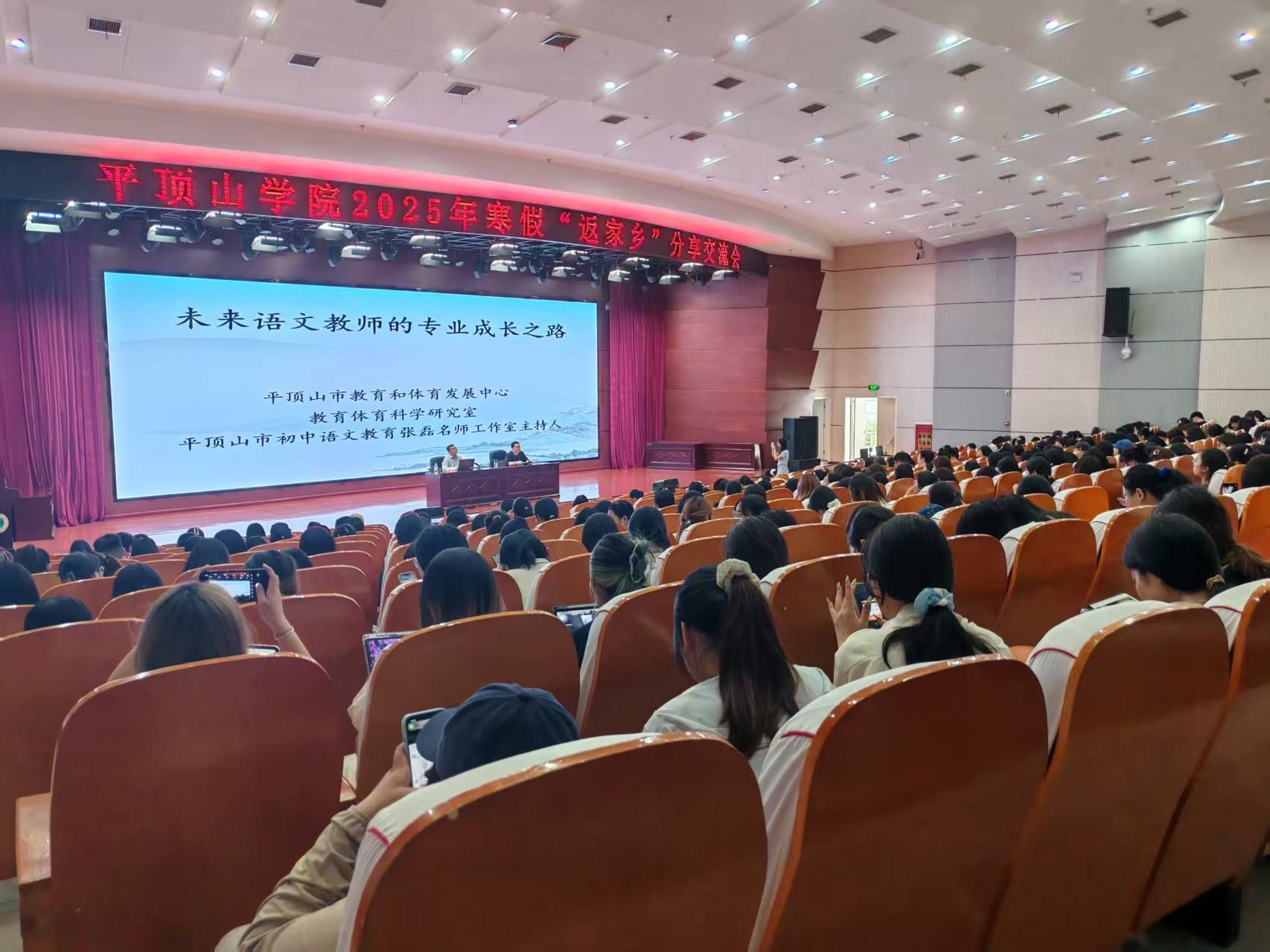 4月16日下午,2025年师范专业集中教育见习专题报告在中心会议室教室举行。平顶山市教育和体育发展中心(以下简称“市教体发展中心”)研究员张磊受邀以《未来语文教师的专业成长之路》为题作报告。公司2022级汉语言文学、汉语国际教育专业员工300余人参加。报告会由伟的国际1946bv官网副经理杜彬彬主持。
