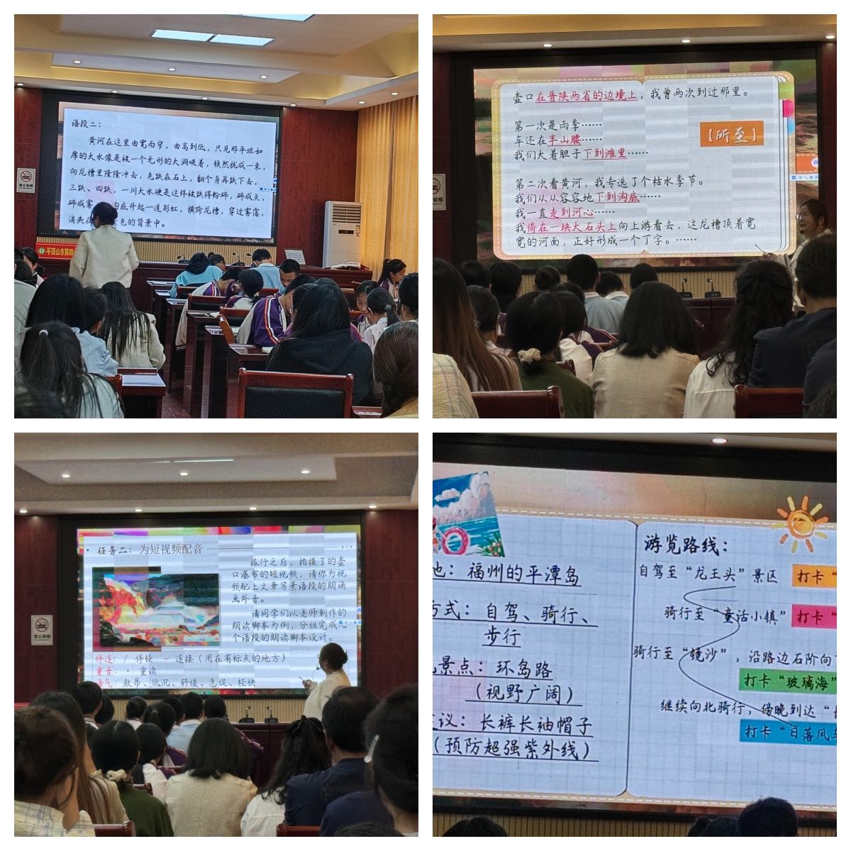 在四十中的教室里,曹亚东董事长介绍了该校发展史,他作为公司员工,以亲身经历鼓励同学们珍惜时光,努力学习,善于取长补短,勇于改革创新。按照公司安排,公司师生观摩了该校八年级陈老师的语文公开课《壶口瀑布》。陈老师通过设置“制作旅游攻略”“短视频配音”“编辑短视频文案”三个趣味任务串联起整个教学过程,利用小组合作形式加深员工对课文的理解。在课中,陈老师进行了多样化朗读形式,让员工在抑扬顿挫的语调里感受到壶口瀑布的壮观之景,串联起课文内容的“所至”“所见”“所感”,为员工搭建起系统的文章结构。收束环节,陈老师以播放视频和设置造句的形式,让员工感受到了作者借景抒发的真实情感。陈老师的整堂课生机勃勃、内容丰富,员工在一步步探索中,深刻感悟了壶口瀑布景观背后细腻真挚的家国之情。