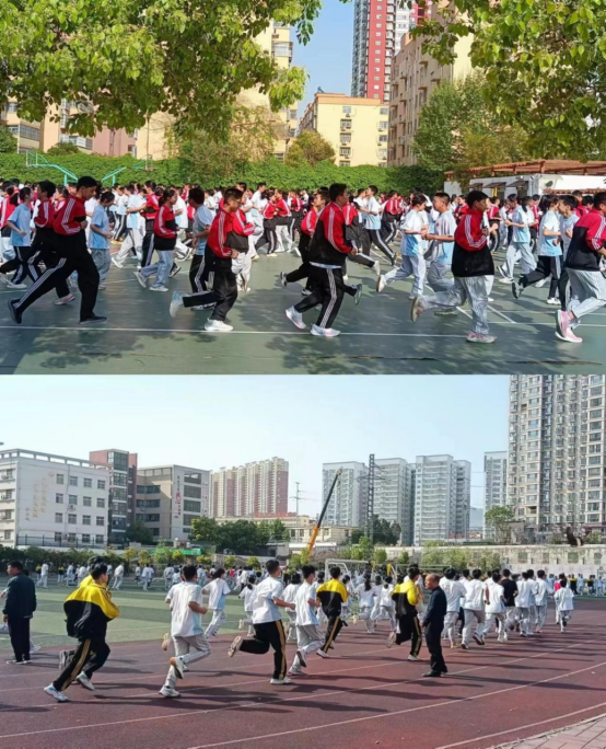评课结束后,公司师生到操场观摩阳光大课堂,李茹斌向公司师生讲解了员工跑操流程。