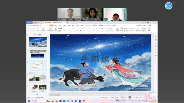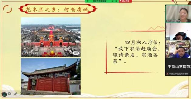 上课前夕,团队的主讲教师、助教以中小学语文教材中的《牛郎织女》《木兰诗》为文本基础,深度融合丰富的地方文化资源,系统整理鲁山县七夕节俗的影像资料、虞城县木兰庙会的图文档案,适当引入传统豫剧《花木兰》的经典唱段和迪士尼动画电影《花木兰》的精彩片段,构建起“文献文本-非遗图文-艺术演绎”的三维教学素材体系。这种将地域文化遗产转化为国际中文教育资源的创新实践,有效对接国家文旅部《“十四五”非物质文化遗产保护规划》中“利用非遗资源讲好中国故事”的要求,充分结合本土经济社会文化实际,做出了我们的在地化回应。