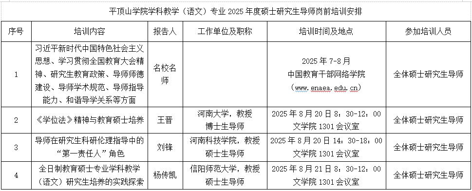 伟德国际victor1946官网学科教学(语文)专业2025年度硕士研究生导师岗前培训安排