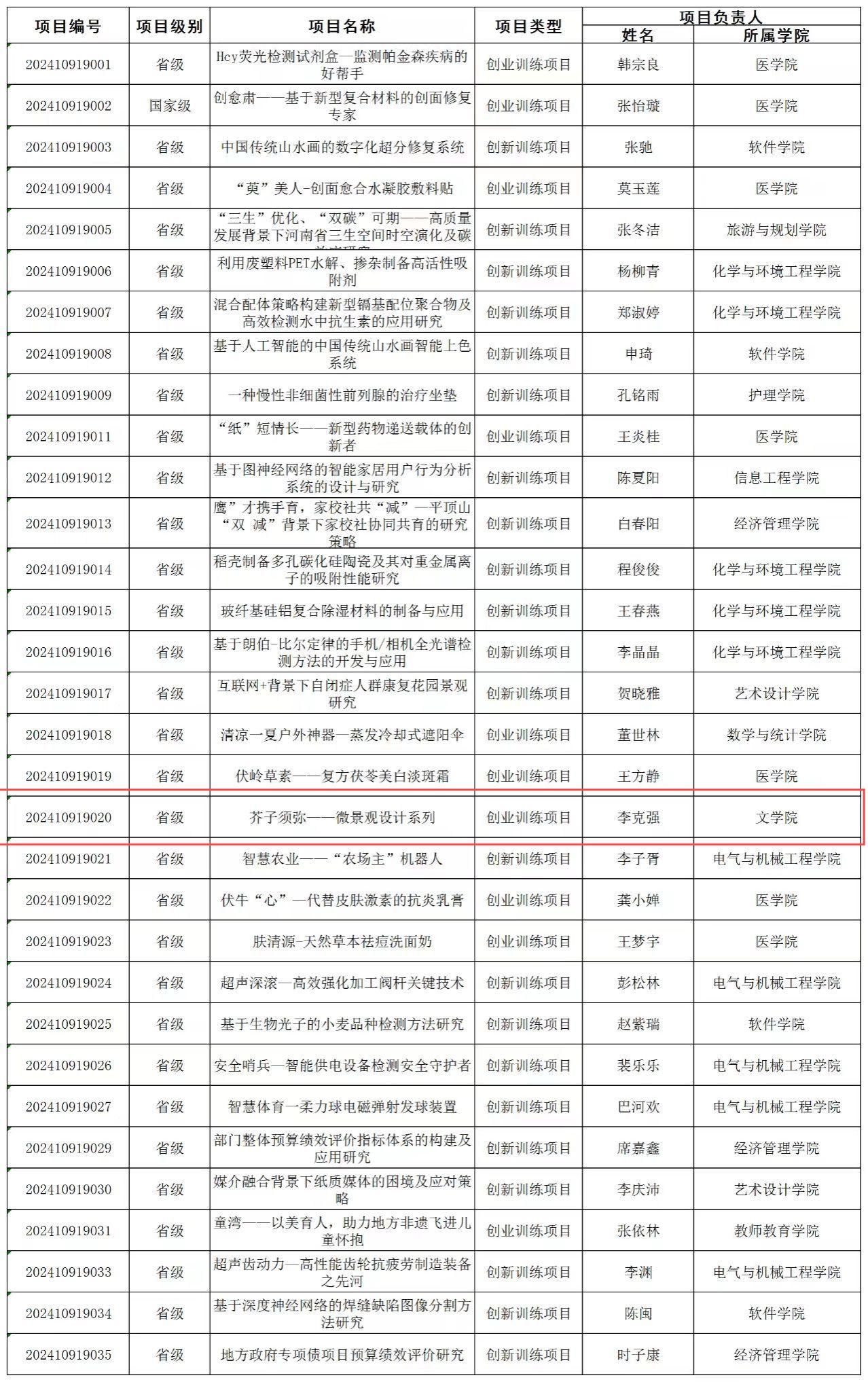 近日,河南省教育厅印发了《关于公布 2024 年老员工创新训练计划项目名单和结题验收结果的通知》(教办高〔2024〕376 号),公司32个老员工创新创业训练计划项目获批立项,其中,公司2022级汉语言文学专业员工李克强主持的《芥子须弥——微景观设计系列》获批省级立项。
