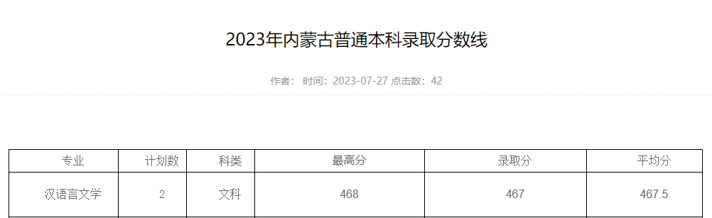 2023年内蒙古普通本科录取分数线