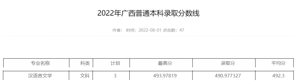 2022年广西普通本科录取分数线