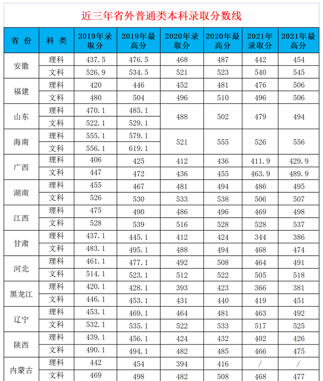 伟的国际1946bv官网普通类本科各专业近三年录取分数线(省内、省外)