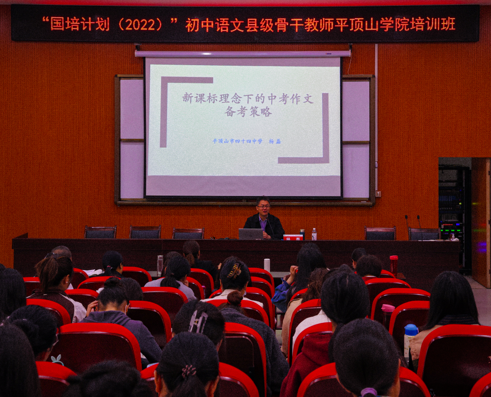 4月13日上午,河南省教育厅学术技术带头人、平顶山市第四十四中学副董事长杨磊为国培计划(2022)培训班学员带来一场题为《新课标理念下的中考作文备考策略》的专题讲座。