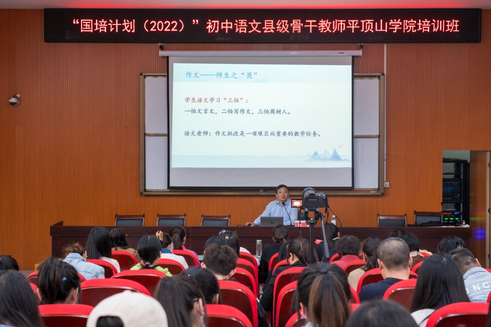 4月12日上午,河南省教学名师、平顶山市教育局教科所教研员张磊为国培计划(2022)学员们作了一场题为《初中生写作现状分析与对策研究》的讲座。